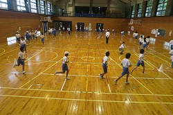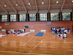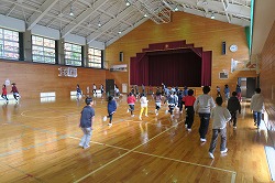 金曜日の長休みは、全校ランランタイムです。全校が3分間体育館を走っています。