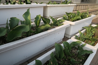 好条件とは言えない学級園や玄関前の大型プランターで栽培しました。