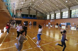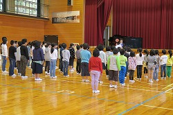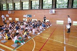 全校朝礼で体育館に集いました。