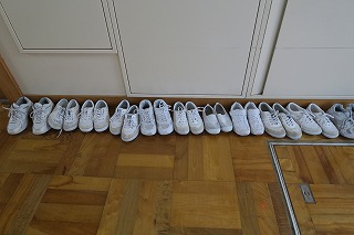 初日に今日は、大雨のため玄関内で友達を迎えました。
