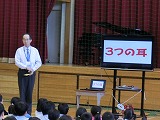 校長先生は、寝てばかりのなまけ者三兄弟を例に、「勉強に近道なし」を話されました。勉強になまけ心は禁物。一時間一時間の勉強にこつこつと真剣に向き合う気持ちを大事にしてほしい。と話されました。