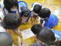いつも見ている学校内でも、クローズアップされた写真ではすぐに思い浮かばないようで、いろいろ話しながら楽しく探す様子が見られました。