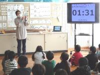 1・2年生が、養護教諭と一緒に正しい歯磨きの方法について学習しました。