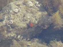 中居湾をのぞいたら、小さな魚がたくさん群れで泳いでいるのが見え、思わずカシャリ。ヒトデも見つけたのでカシャリ。まるで日向ぼっこをしているようです。それにしても、本当にきれいでおだやかな海ですね。