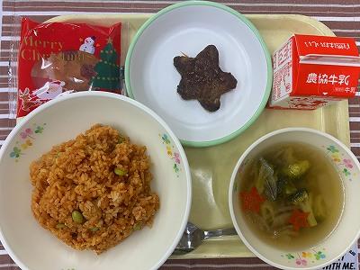 今日は2学期最後の給食です。クリスマスイブということもなり、今日はクリスマスの行事食です。