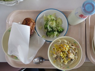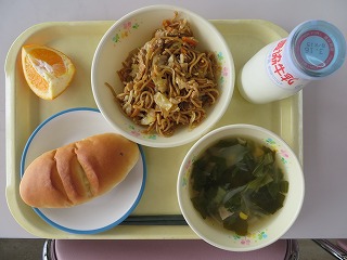 チーズクッペ 焼きそば 中華スープ いよかん 牛乳