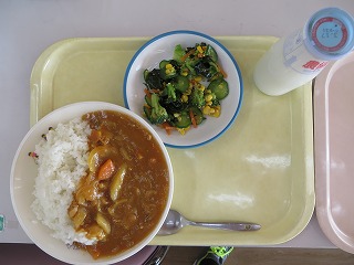 ごはん 魚のカレー揚げ 切り干し大根のぴり辛 みそ汁 牛乳