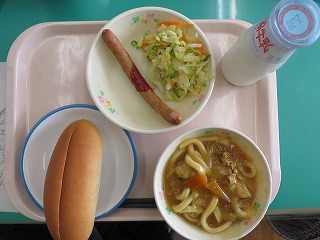 ウインナーサンド カレーうどん 野菜ソテー 牛乳