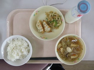 ごはん ぎょうざ もやしのナムル 八宝菜 牛乳