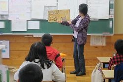 図書支援の先生や読み聞かせの先生、校内の先生が各教室で読み聞かせをします。