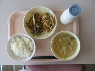 ごはん あじの南蛮漬け きんぴらごぼう みそ汁 牛乳