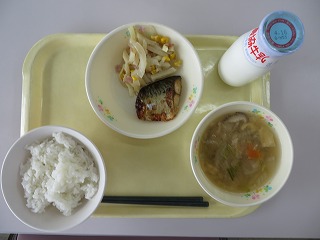 ごはん 焼き魚 ジャーマンポテト みそ汁 牛乳