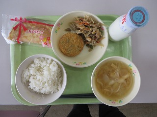 ごはん みそ汁 菜の花コロッケ きんぴらごぼう クレープ 牛乳