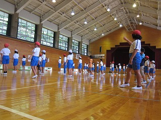 5限目に全校が体育館に集まり、よさこいの仕上げ練習をしました。