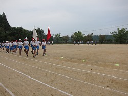 降雨を想定し1~2限目に開会式やスタンツなど種目を限定して予行を行いました。