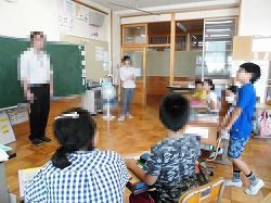 輪島警察署・穴水庁舎の皆様のご協力をいただき、不審者対応避難訓練・行動訓練を行いました。不審者が玄関から侵入し職員が対応する間に、児童は静かに速やかに決められた場所に避難することができました。その後は体育館に集まり、登下校時における不審者による声掛けへの対処方法を学びました。児童は様々な内容の声かけがあることを知り、「いざという時に大声を出すことの難しさ」を感じることができました。