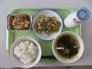 中島菜ご飯 豚肉のみそしょうが焼き 白和え 野菜のかす汁 アイス 牛乳