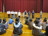 昨日、穴水中学生が、本校6年生に、「穴水中学校のあいさつの決まり」を話してくれました。
