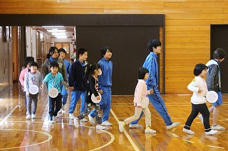 1年生を迎える会のため、4限目に全校が体育館に集いました。
