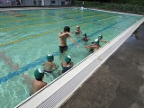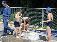 当初、7月16日(水)に予定してました着衣水泳を本日行いました。夏休みになり本格的な水泳シーズンに入る前に、「自分の身は自分で守る」を合い言葉にいろいろなことを学びました。
