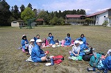 2限目の途中,地震発生の警報が鳴り,児童は机の下に潜り,その後,防災頭巾を身につけ,「お・は・し・も」の約束どおり,運動場のバックネット前まで避難しました。児童は,先生の指示に従い上手に避難しましたが,その直後,大津波警報が発令し,校舎からさらに高い場所に,走って避難しました。避難までの道のりが大変,長かったのですが,どの児童もへこたれることなく,無事に高台まで逃げることができました。