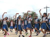 向洋小学校が開校したときから毎年指導を受けていた「十八番連(おはこれん)」の皆さんと再会して、今日は3年ぶりに対面で、よさこいを教えていただきました