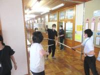 防犯講習では「いかのおすし」の標語から「いかない」「のらない」「おおごえをだす」「すぐ逃げる」「しらせる」の5つの行動指針について講習をしていただきました。また、ランドセルを持った状態で声掛けされたときを想定し、大声をだしたり防犯ブザーを鳴らしたりして逃げる練習をしました。