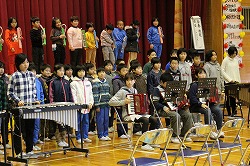 アコーディオン、リコーダー、鍵盤ハなどを使い「三丁目の夕日」を見事に演奏しました。