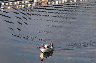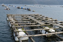 朝日の中のボラ待ちやぐら