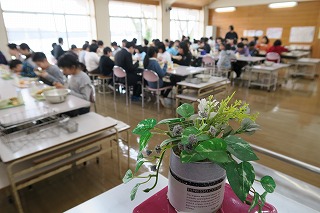 これは、いつもの学年ごとではなく、縦割り班で和やかに会話しながら