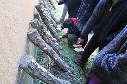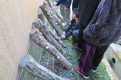 6年生が椎茸の収穫をしました。この椎茸は、5年生の時に植え付けたものです。