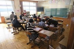 先日卒業した卒業生が、午前中自主的に登校して学習会をしています。