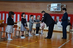 5限目に平成27年度の修了式がありました。校長先生から、1年間のお勉強を無事に終えたことへの子ども達へ「おめでとう」の言葉と、197日間皆出席の23人へ賞賛の拍手が全校から贈られました。