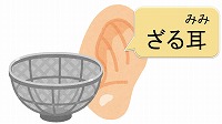 | 二つ目は「ざる耳」。ざるは,野菜などを入れて洗うと,野菜は残りますが水は流れてしまいます。人の話を聞いたときには,大体のことは覚えているのですが,細かいことは覚えていない耳。そして,時間がたつと忘れてしまう耳。 | |