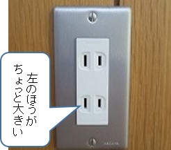 | みなさんは,コンセントの穴の大きさが左右ちがうということを知っていましたか? よく見ると,左の穴が9mm,右が7mmなのですね。 ほんの2mmのちがいですが,このちがいには理由があります。 なぜ左の穴が大きいかというと,大きな電流が家に流れてきたときに,その電流を地面に逃がすためなのです。 何気なく生活していると,2mmのちがいには気づけません。 いろんなところに目を向けて,「なぜだろう?」,「どうしてかな?」を発見してみてください。 そこには,ちゃんと理由があります。 私たちが当たり前に過ごしている日常には,安全・安心のためにいろんな工夫や知恵がつまっているのです。 | |
