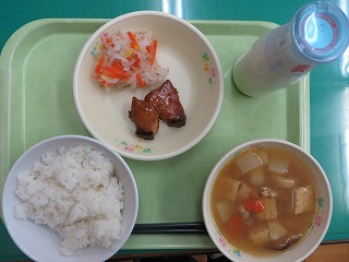 ごはん ぶりの甘辛 大根なます 煮しめ 牛乳