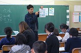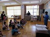 ふるさと教育の一環として毎年行っている「たたら唄」の練習が今年も始まりました。中居たたら唄保存会の田方さん、米田さんに来ていただき、「中居たたら」の歴史と「たたら唄」の意味などを教えていただきました。
