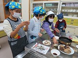 沖波きび加工組合から二人の先生をお招きして,きびだんごを作りました。残念ながら