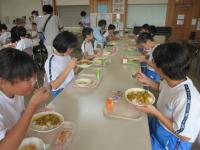 1年生にとっては、今日が給食もはじめて。ご飯も増やしてもらうほどの量を時間内に食べ終わっていました。