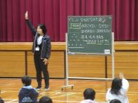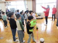 「やればできる!」「全集中!」「大丈夫だよ、ゆっくりでもいいからね!」など温かい声掛けが自然発生し、みんなが体いっぱいに楽しみました。最後にコーチからは「初めてのことや苦手なことにも一生懸命すると楽しいし、一生懸命にやろうとすることが大切です。チームでいい声掛けをしていました。学校生活も一生懸命にやると楽しくなります。」と激励していただきました。