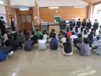 離任式では、これまで向洋小学校を支えてくださった6名の先生方とお別れすることとなりました。児童代表の古道さんの切々と一人一人に向けた別れの言葉に皆が感激しました。