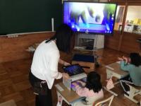 プロサッカー選手の板倉滉さんからのメッセージ動画を見た後、コーチと思い切り体を動かしました。