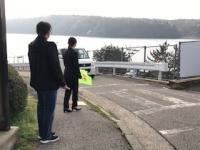 強い海風を受ける本校。体育館屋根瓦のブルーシートを張り直すために、業者の方に何度も足を運んでいただきました。おかげで大きな雨漏りは解消され、昨日、体育館で卒業式を終えることができました。
