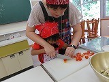 1・2年生がふるさと学習で育てたトマトを使って料理体験学習をしました。