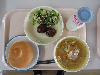 ミルクロール 野菜ラーメン 肉団子 ビーンズサラダ 牛乳