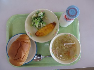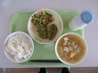 ごはん ささかまの磯辺揚げ おひたし とり野菜 牛乳