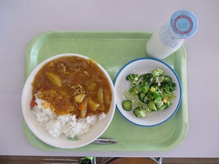 牛肉チャーハン 中華スープ シーチキンサラダ 牛乳