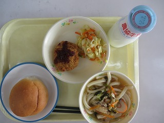 コッペパン ポークカツ 野菜ソテー うどん 牛乳