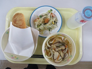 きなこパン ワラビ入りうどん ウインナーソテー 牛乳