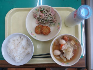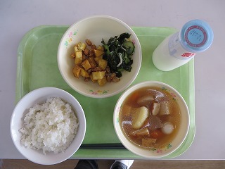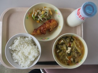 ごはん 大豆ナゲット いそあえ とり野菜 牛乳